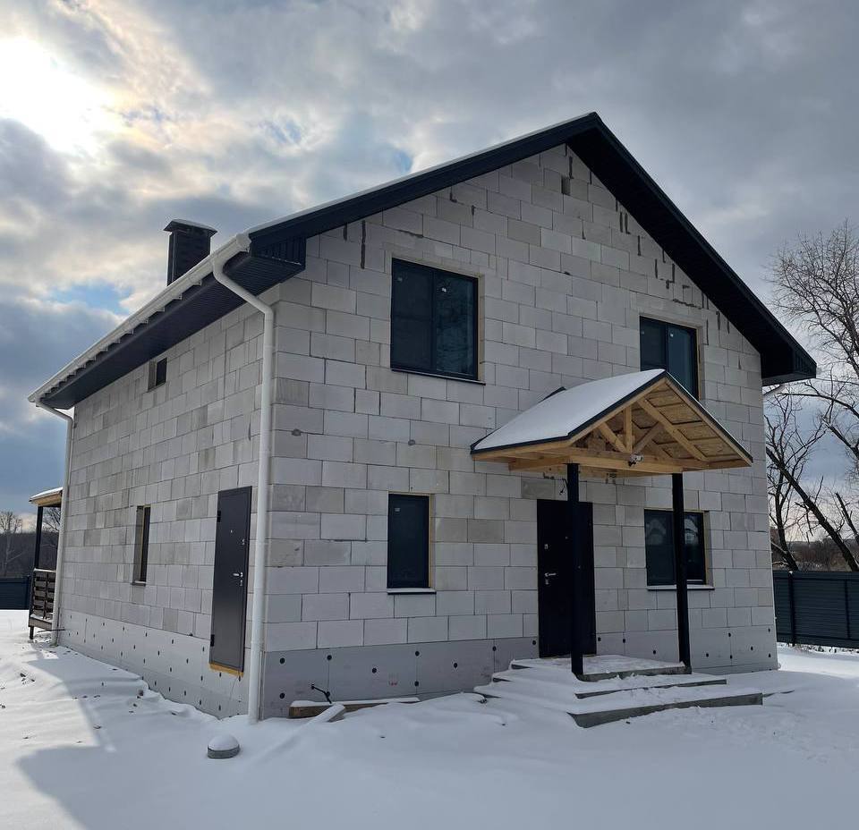 Крепление кровли к стенам дома в соответствии с проектным решением.
